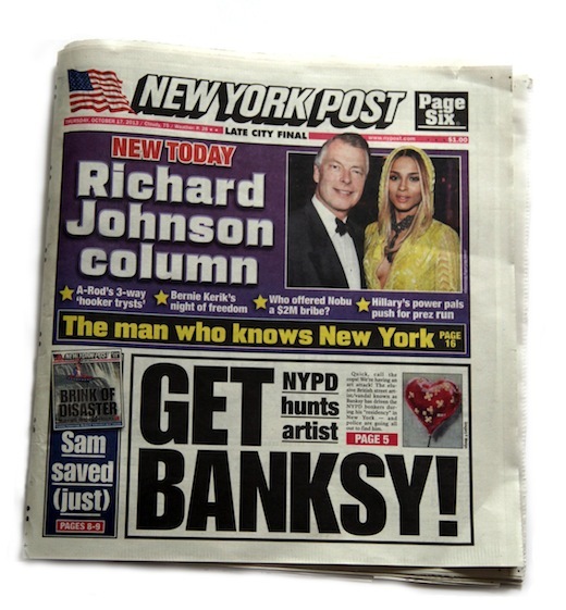 Since the last time we posted about Banksy's month long street residency in NYC, Better Out Than In, we have witnessed a few pieces going up in NYC (or at least part of the masses going to see the pieces) and see the backlash of a certain Mayor Bloomberg making his comments about "urban decay." Banksy has given us a confessional, Ronald McDonald's wage reenactment, a Central Park painting sale, a pop-up outdoor show with Os Gemeos under the High Line, and of course, trying to staying Ghetto 4 Life.