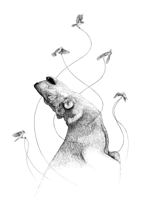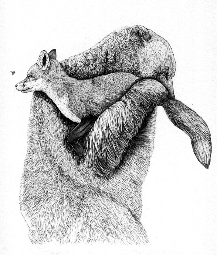 Amy Dover is a UK based and internationally recognized artist and illustrator. In her intricate, and beautifully executed graphite drawings she explores primal and human desires, complex narratives, and traditional tales. Through dark characters, melancholy tones and the anthropomorphization of animals, Dover invites the view to enter a world which challenges traditional perceptions, and nature becomes the central focus.