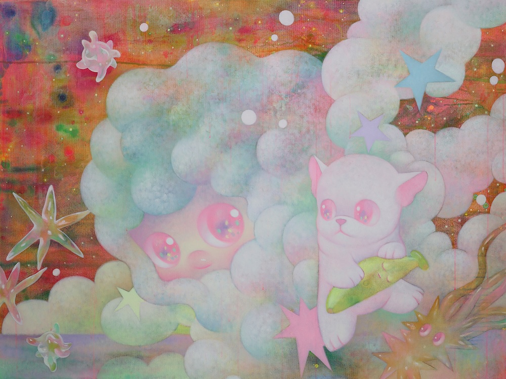 So Youn Lee’s latest solo exhibition at Hashimoto Contemporary, Anomaly, explores the journey of feeling different and finding belonging within circumstances that are themselves strange. Her main characters Choco and Mango navigate a world of anomalous creatures discovering themselves and their extraordinary surroundings, imagining a place where those deemed peculiar or offbeat naturally find a home. Before her solo exhibition opened at the Los Angeles gallery, the artist spoke with Katherine Hamilton about these characters’ developing narrative arcs, how a great loss inspired new changes in her artwork, and how she’s continuing to eschew stylistic labels.