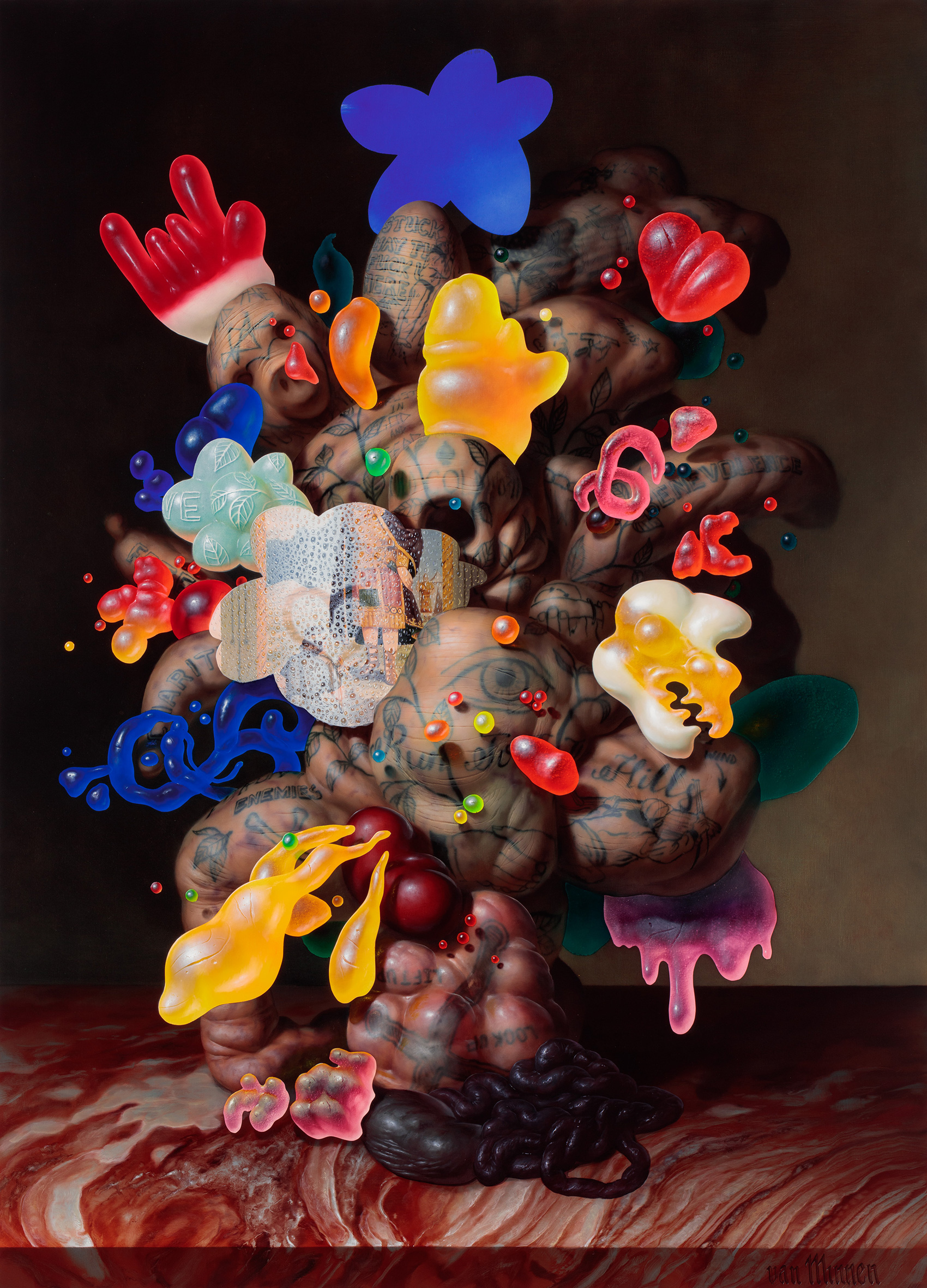 Provocative is the word, that's kind of what I was aiming for. The way you balance substance and technique with the sort of provocation that makes you look further into it. I've been with other artists who looked at your paintings, and rave about your technique, especially those with the floating gummies. This may sound silly, but how does good painting happen? Is it just work, work and work? Is it studying? How do you become a better painter?