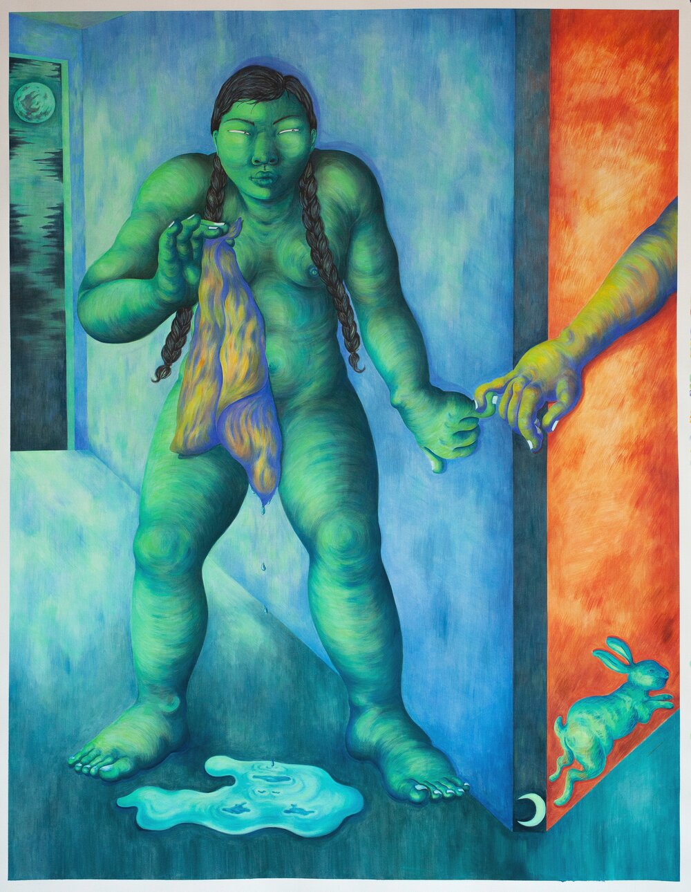 As with many artists, Covid-19 disrupted and changed Lily Wong's practice. Her figures, once rendered tiny and placed in maze-like environments, began to fill the frame, twisting and swelling into their own claustrophobic architecture. Color began to exert an intense, metaphorical force, often glowing and luminous. The works on paper grew in size, doubling and tripling in surface area, while Wong's intricate process of mark-making and building up of the paint grew in exponential complexity. This partially portrays the power these figures and narratives possess, but the impetus is Wong herself, as deep and considerate a thinker as she is a deft creator. We met in her Greenpoint studio in early June to discuss her influences and concerns, as well as the major changes the past year has made to her practice.