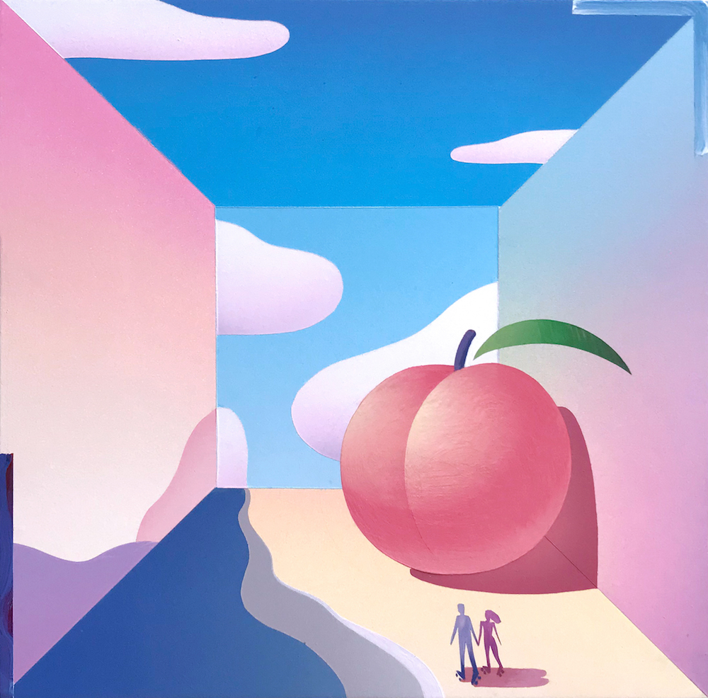 California. As an inspiration, it is a cornucopia of colors. A palette of emerald from the north coast would dramatically differ from pale pastels of the deserts in the extreme Southeast. From Eureka to San Diego, it's a massive state, an amalgamation of the entire planet in one 840-mile stretch, north to south. Maxwell McMaster, a native of Central California, now based in Los Angeles, captures a particular mood and aesthetic of the romanticism of the Golden State. With sunset hues and coastal vantage points, McMaster taps into a subconscious and flat, dreamy depiction of home and place, one that doesn't necessarily make him a pastoral or environmental artist, but someone who channels space in unique ways.