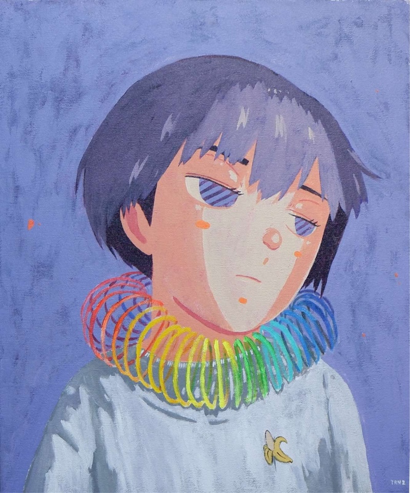 Tania Marmolejo captures ambiguous female facial expressions characterized by large eyes, aiming to evoke emotional empathy in viewers. Her work invites audiences to connect deeply with the feelings conveyed. Masumi Yamamoto draws children adorned in ethnic clothing, infusing her illustrations with a mystifying beauty that explores the originality found across diverse cultures. Through her art, she navigates the enigmatic space between the world and her own experiences. TRNZ seeks to blur the boundaries between two realms by presenting familiar objects in unfamiliar contexts. His work transforms everyday situations through unique gestures, highlighting the distinctiveness of ordinary items. Tatsuhito Horikoshi focuses on melancholic expressions drawn from memory and imagination, creating poignant portraits of boys and girls that resonate with feelings of nostalgia and reflection. His work, influenced by manga storytelling techniques, captures the subtle nuances of emotional experiences within the context of societal expectations.