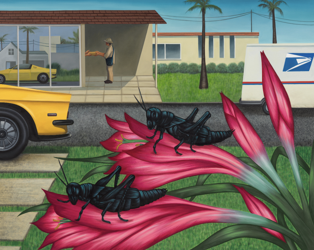 Julie Curtiss does this thing with painting in which she speaks of the contemporary political climate without a hint of an obvious visual to grasp onto for context. She is sneaky in that way, and one of the best painters of the last decade to emerge in the wake of a resurgence of Chicago Imagist admiration but through her own satirical vision. Her cover story with us in Fall 2021, which I have mentioned numerous times, was where my admiration for her ability to be both political and social in one image really came to fruition. I like to think she has a vantage point over the procedings of life in a way few other painters have. "I’m interested in systems building themselves and falling apart, in the cycle of chaos and order, and in the moment when something is pushed to its breaking point," Curtiss says of her new show, Suburban Lawns, on view now at Gagosian in Paris, and perhaps this is the most explicit I have heard her on the subject. We live in times where destruction of norms is now the norm, where chaos is being presented as some manicured future of ones liking, systems collapsing on purpose to make way for some omnipresent utopia of a future.