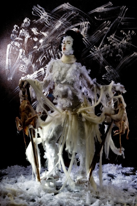 We think it is this image of the octopus/squid with women's heads bulging out that really got us out of bed this Monday morning...creepy but cool. Japanese photographer Daikichi Amano explores the gruesome connection between Japan's metaphorical and literal consumption of both the female form and creatures of the sea. Octopus carcasses embrace women's naked bodies, dripping across their skin and morphing into weird appendages that blur the line between woman and animal.