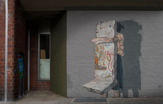 Though drawings, illustrations and even some sculptural pieces are included in the showcase, it's his effective large-scale wall paintings and interventions that brought him recognition.